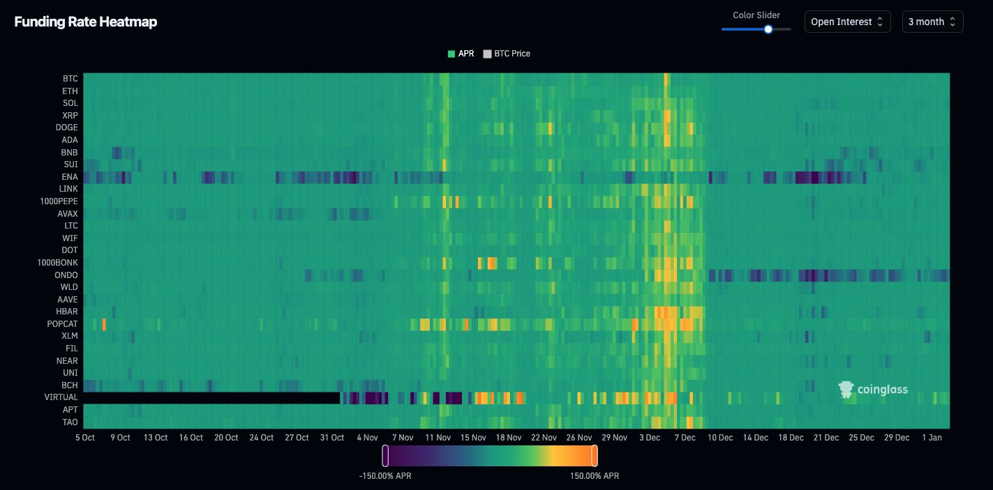 Funding data becomes even more powerful when viewed alongside Open Interest and Liquidations. Rising OI with high positive funding often indicates crowded longs and elevated liquidation risk. Conversely, deeply negative funding during an OI drop shows panic, usually near market bottoms.